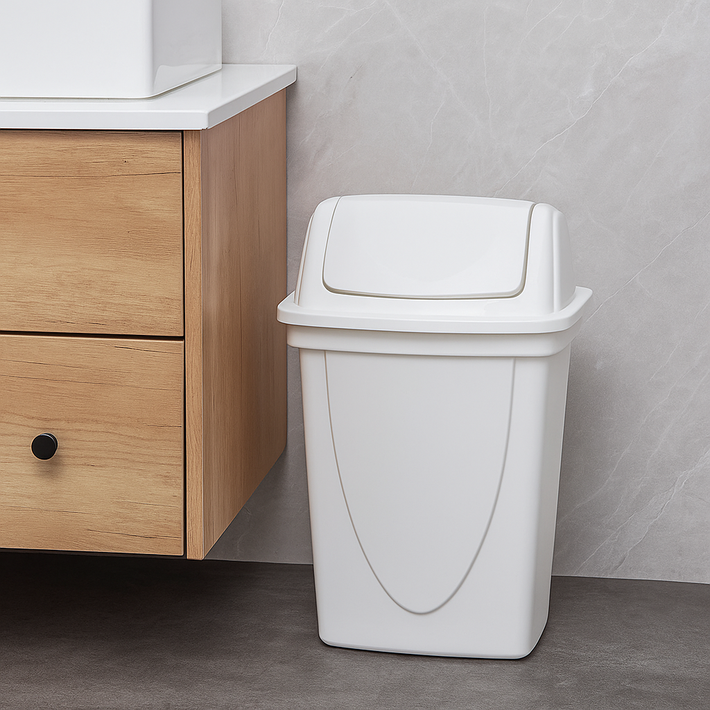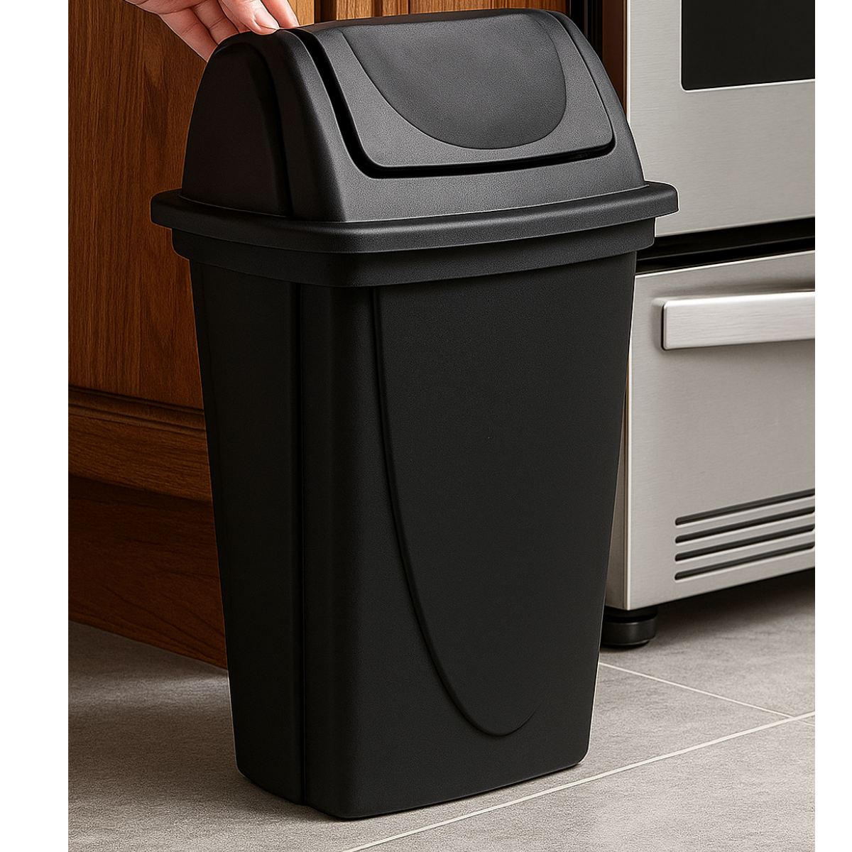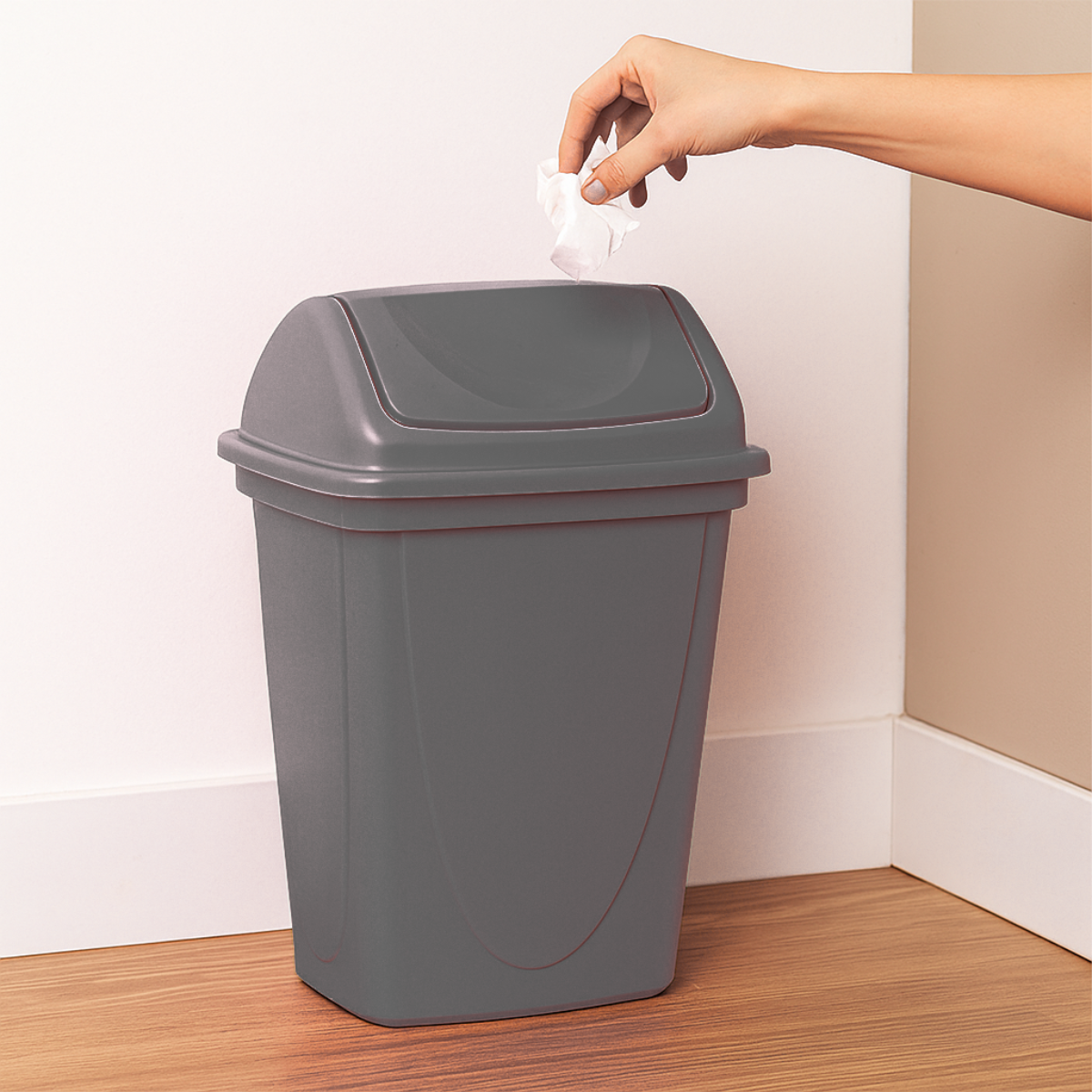 Bote de basura con tapa movible para mejor higiene al depositar residuos de basura.