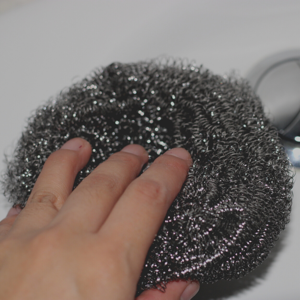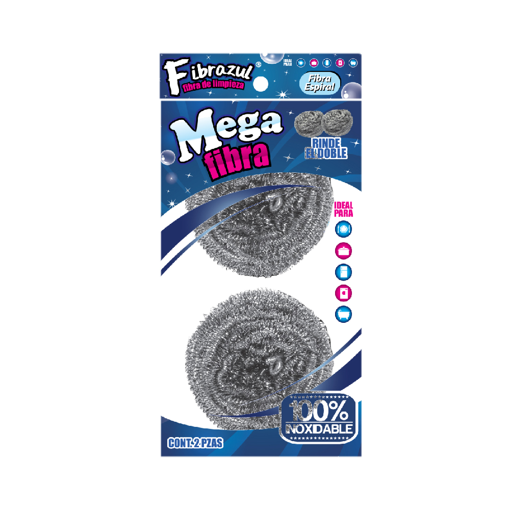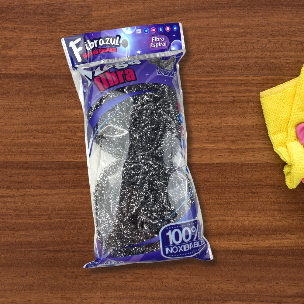 Fibra de acero inoxidable para limpiar objetos y lugares sin rayar. Con su fibra rasposa y suave es ideal para cocina, baños y utensilios de cocina.