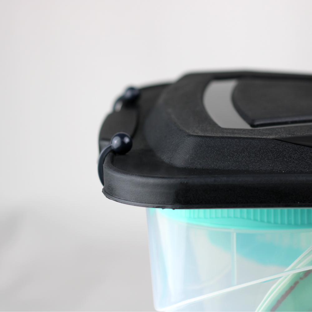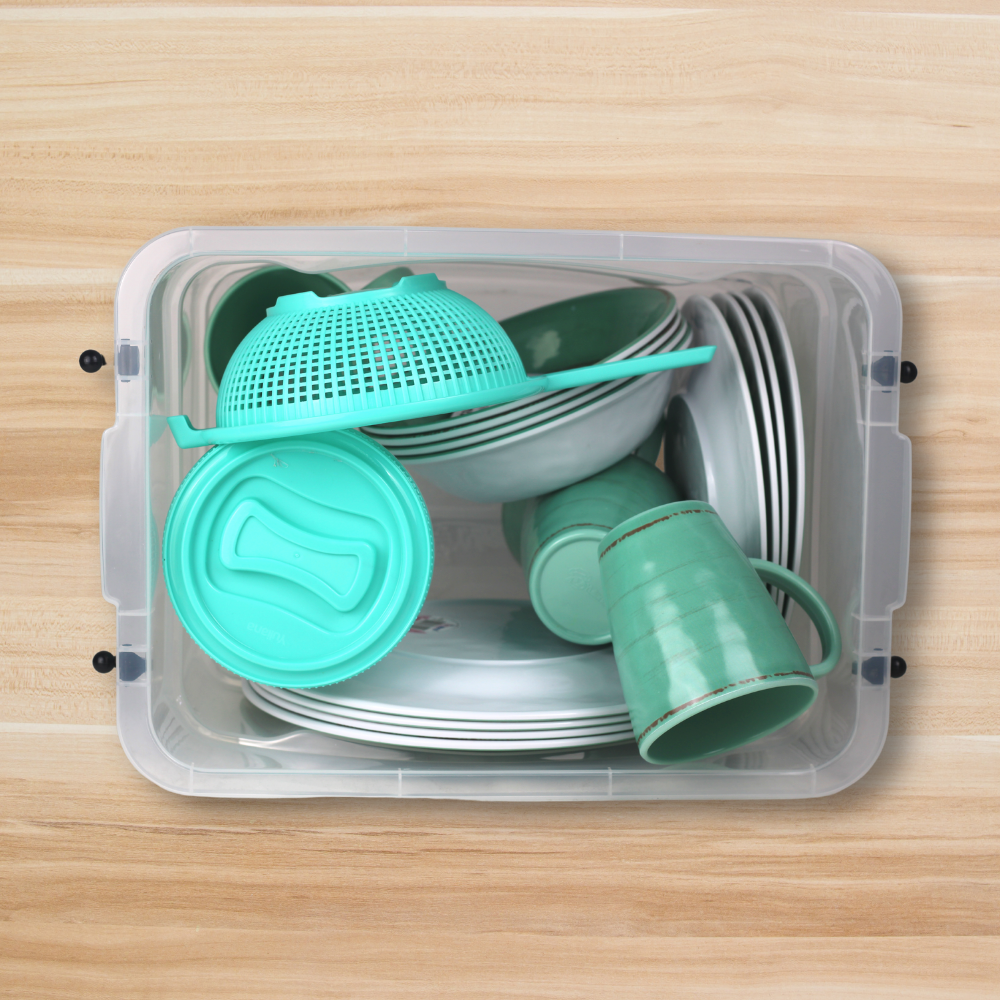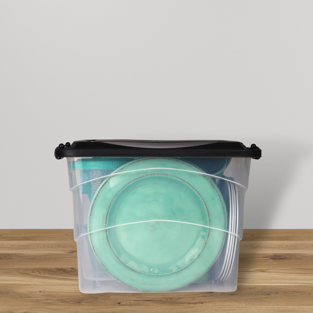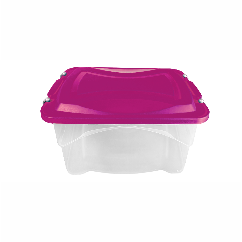 Caja organizadora con tapa inteligente para cerrado eficaz.
