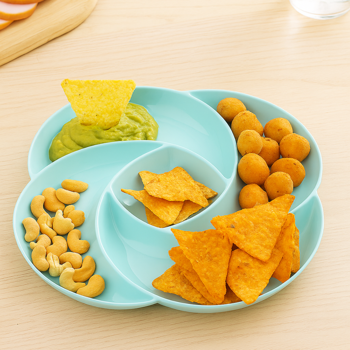 ¡Tus botanas para disfrutar en familia! El botanero cuenta con separaciones para diferentes guarniciones, tanto solidas como liquidas.