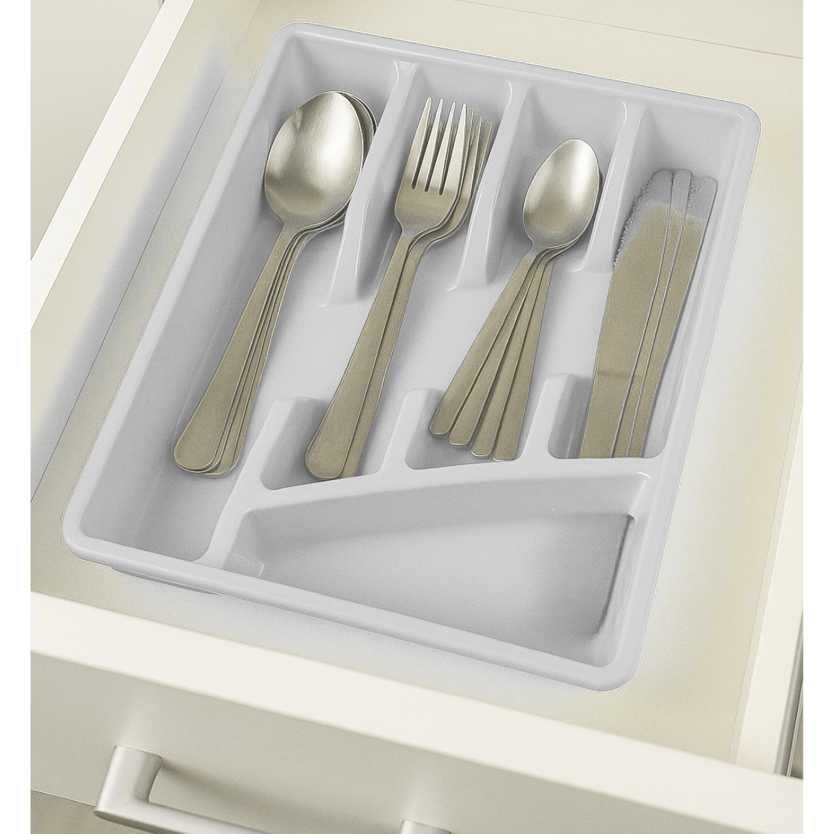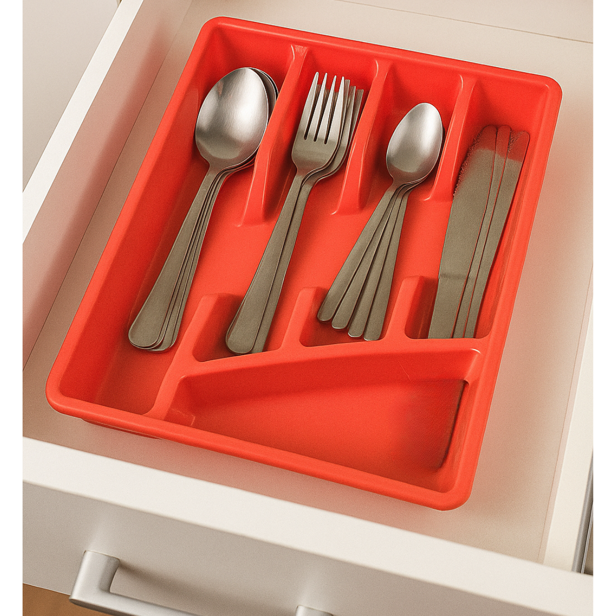 Porta cubiertos con división para ordenar en cajón utensilios. Plástico duro para mejor resistencia.